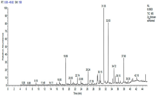 2.6. Identification of Chemicals That Constitute Z. officinale Extract by GC-MS