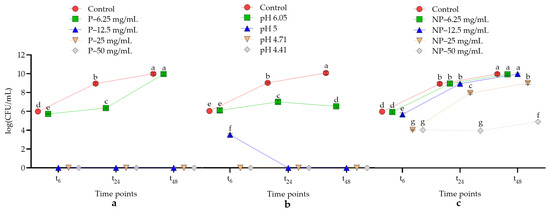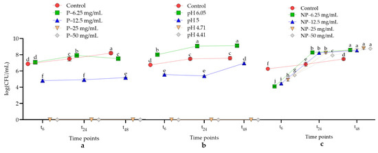 2]. Another limitation is that the slightly acidic environment (6.01–6.10) caused by the low concentration (6.25 mg/mL) of postbiotics may favor the growth of