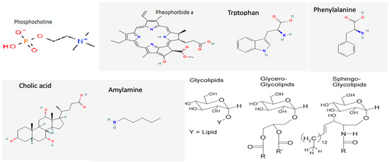 The water samples from the fishpond sampling sites in Nigeria and South Africa shared similar secondary metabolites. including eicosapentaenoic acid (EPA), pentanoic acid, carboxylic acid, octadecanamide, ethanesulfonic acid, and tryptophan, as presented in Figure 3. The polar lipid identified in the water samples was dominated by six main classes: glycolipids, phosphosphingolipids, phospholipids, phosphatidylglycerol (PG), and phosphatidylethanolamine (PE), distributed across fishponds. Cyanobacteria are intrinsically linked to the presence of specific lipid classes such as glycolipids, phosphosphingolipids, and phospholipids, including phosphatidylglycerol (PG) and phosphatidylethanolamine (PE) in surface water [36,37]. These polar lipids constitute the building blocks of cyanobacterial membranes, characterized by molecular structures surrounded by glycerol backbones and ester-linked fatty acids [38,39].