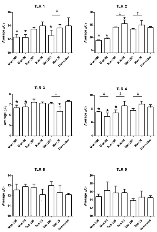 3.2. Quantitative Analysis of TLR Gene Transcription