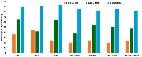 3.8. Effect of Sub-MICs on Hydrophobicity