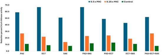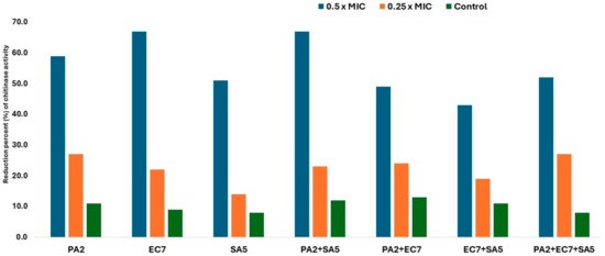 3.11. Effect of Sub-MICs on Chitinase Activity