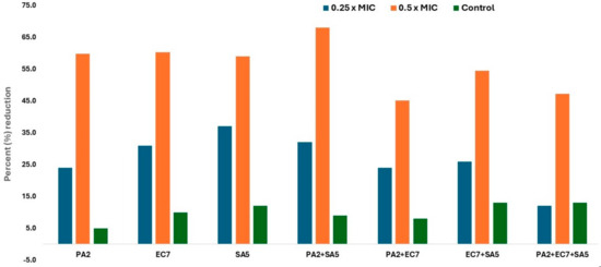 3.12. Effect of Sub-MICs on Preformed Biofilm