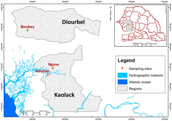 Location of the sampling sites in Senegal.