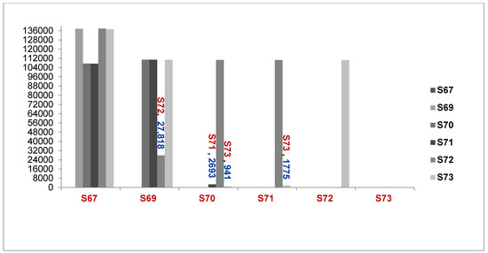1. S67 compared with S69, S70, S71, S72 and S73; 2. S69 compared with S70, S71, S72 and S73; 3. S70 compared with S71, S72 and S73; 4. S71 compared with to S72 and S73; 5 S72 compared with S73.