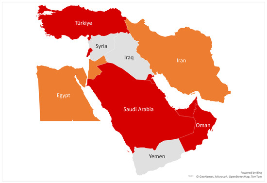 Reported C. auris outbreaks in selected Middle Eastern countries [13]. Colour code: Red = Confirmed outbreak; Orange = Suspected cases; Grey = No data available.
