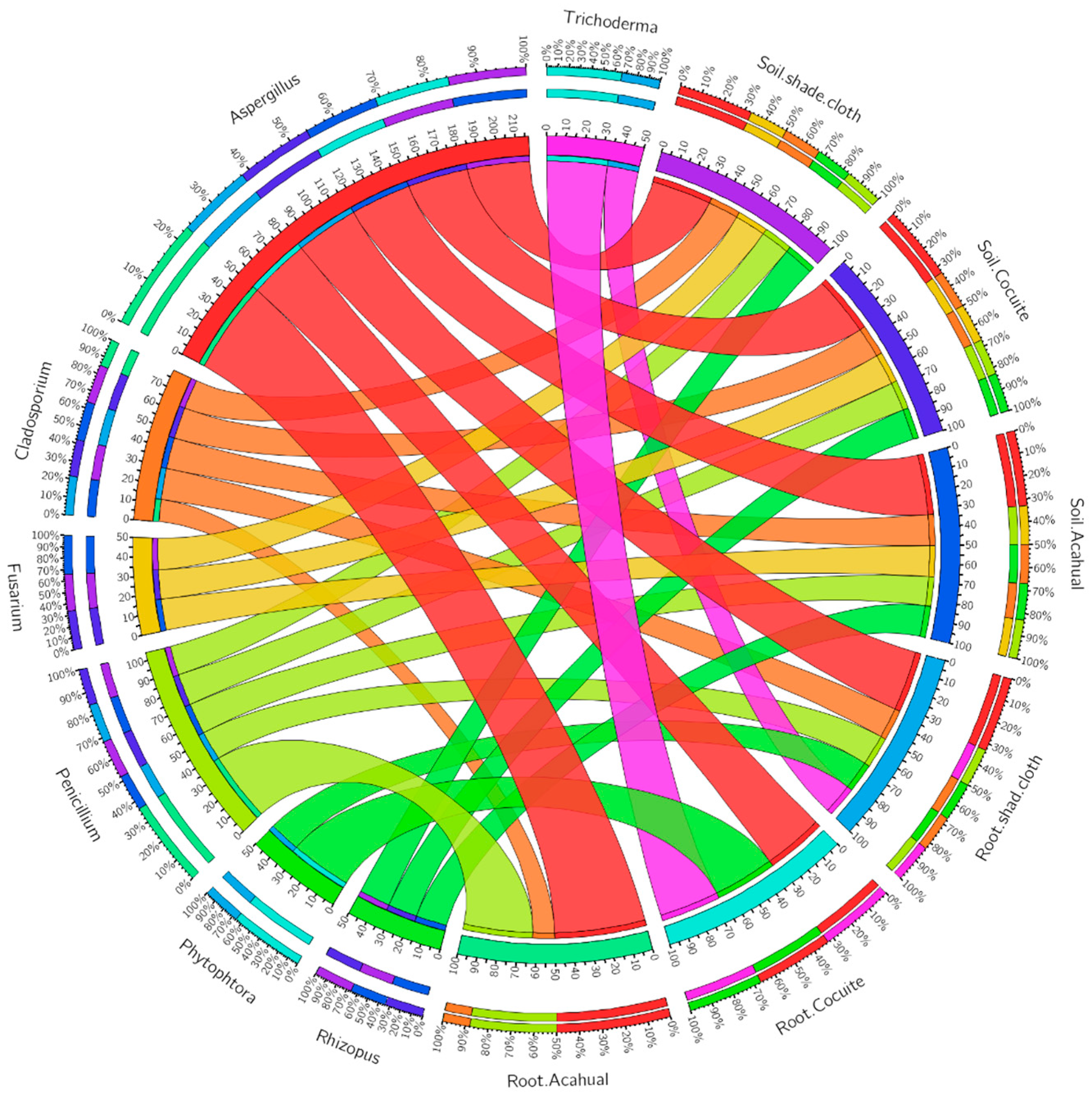 3.2. Diversity of Fungi Associated with the Vanilla planifolia Root