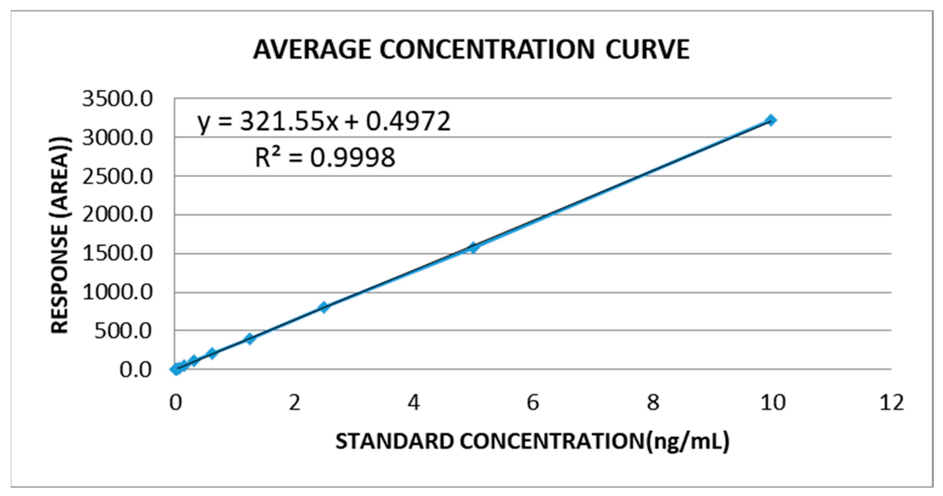 | Concentration (μg/mL) | Average Areas | Experimental Mean Concentration |