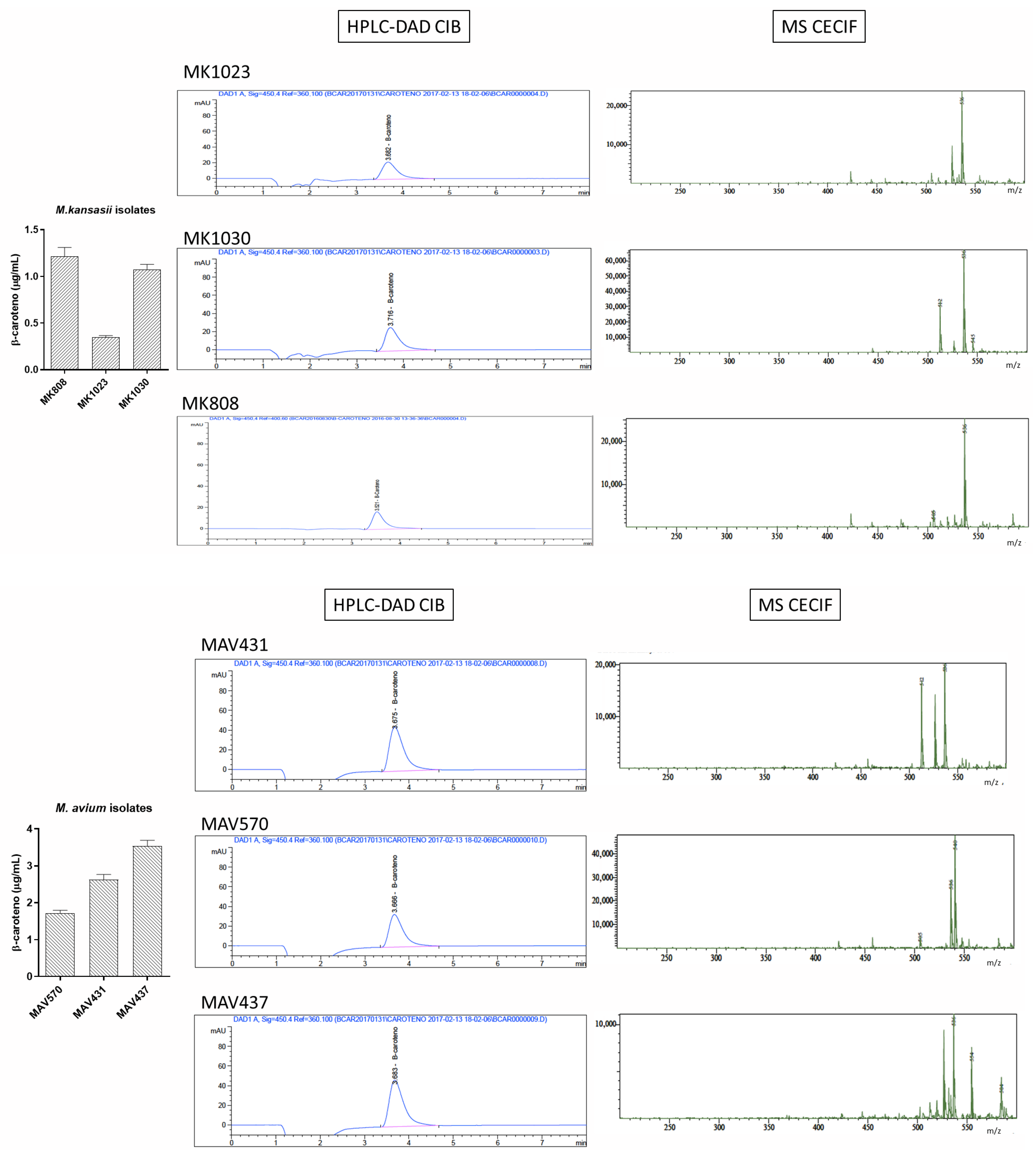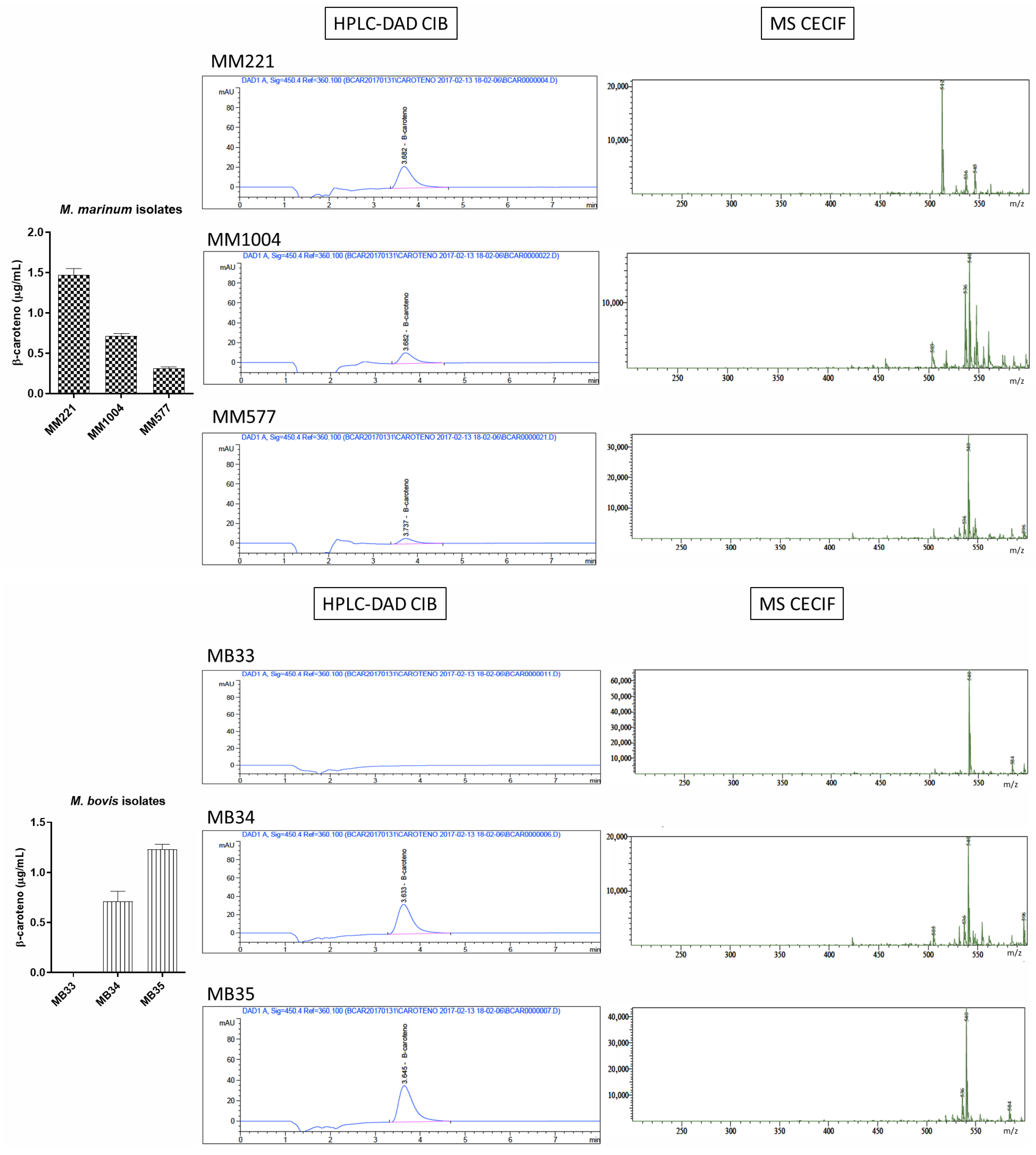Sensitive Detection of β-Carotene in Chromogenic and Non-Chromogenic Mycobacteria by HPLC-DAD and UHPLC-MS