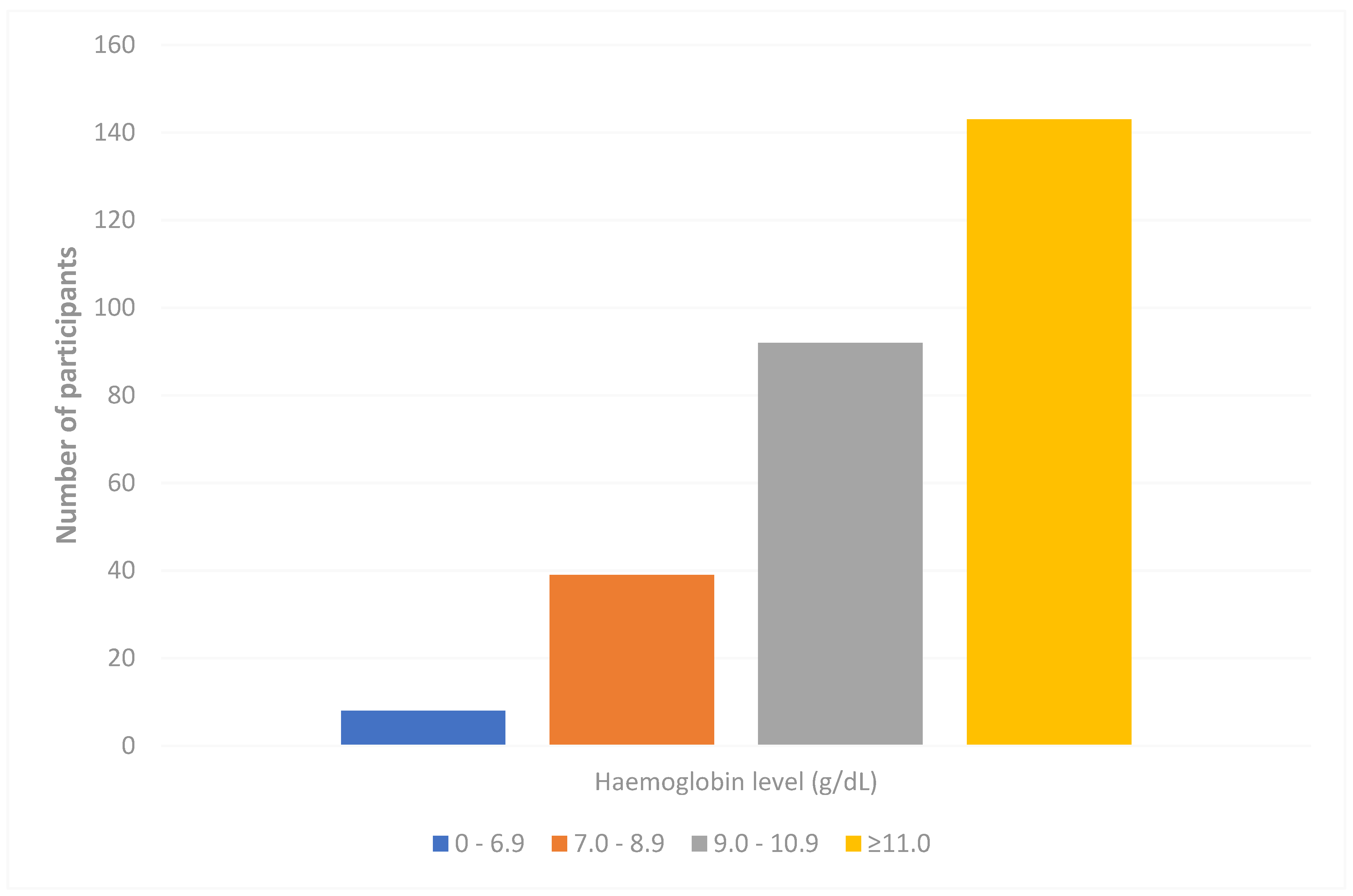 - Haemoglobin Concentrations for the Diagnosis of Anaemia and Assessment of Severity. Available online: https://www.who.int/publications-detail-redirect/WHO-NMH-NHD-MNM-11.1 (accessed on 4 February 2024).