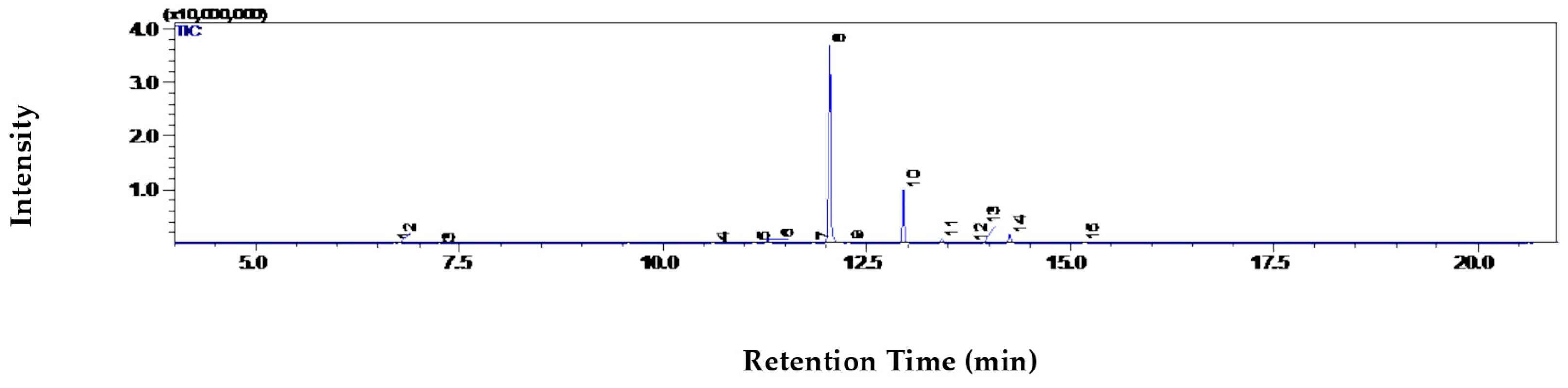 2.2. Identification of Volatile Compounds by Gas Chromatography–Mass Spectrometry (GC–MS)