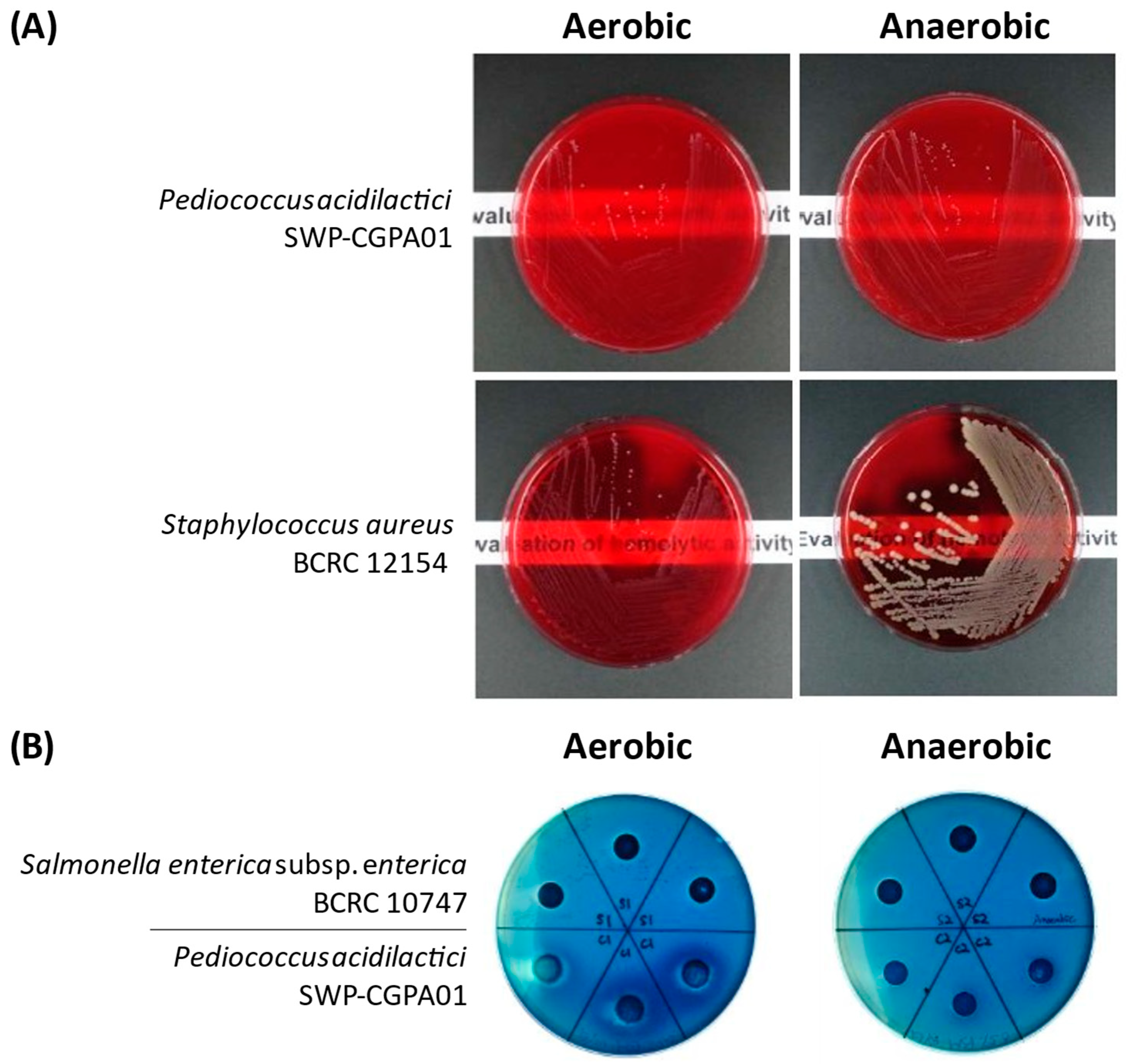 3.3. Phenotypic Characterization-Based Safety Assessment of P. acidilactici SWP-CGPA01