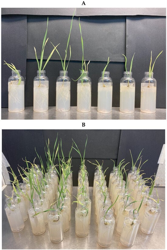 An in-house bioassay was developed to determine the response of plants to the application of selected microorganisms and biostimulants. The aim of this bioassay was to enable the study of plant–microbe interactions in otherwise sterile media over a relatively short period of time, with sufficient development of plant shoot and root systems to allow the easy harvest of plants and the subsequent measurement of plant characteristics to efficiently determine the effectiveness of plant additives.
