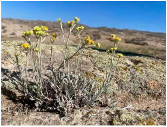 Helichrysum arenarium (L.) Moench is a perennial herb that belongs to the genus Helichrysum within the Asteraceae family. This species is characterized by its woody and robust rhizome. Its medicinal significance is notable, attributed to the presence of tannins and volatile oils throughout all parts of the plant, which are known to stimulate bile secretion as well as exhibit anti-inflammatory and antioxidant properties. This herb thrives at altitudes ranging from 900 m to 2400 m on earthy hillocks, semi-sandy dunes, slopes of wet saline soils, gravelly terrains, sand dunes, and grasslands, and beneath pine forests [1,2]. The distribution of this species extends across Russia, Europe, Mongolia, and the Xinjiang Province in China. Within Xinjiang Province specifically, it can primarily be found in Altay City, Habahe County, Fuyun County, and Qinghe County. The Altay region is characterized by a continental north-temperate cold climate zone featuring dry and hot summers alongside cold winters. It experiences low precipitation levels coupled with high evaporation rates; there are significant temperature fluctuations between day and night, along with abundant sunlight [3]. The sampling site itself exhibits sandy soil conditions combined with a dry climate marked by considerable diurnal temperature variations and ample sunlight. The primary chemical constituents of H. arenarium (L.) Moench are predominantly flavonoids and polyphenolic compounds, with tannins and volatile oils present throughout the entire herb. Furthermore, the flower sap demonstrates significant effects in promoting bile secretion [4,5]. This plant exhibits a wide array of medicinal properties, including choleretic, hepatoprotective, and antiviral activities. Additionally, its flowers reveal lipid-lowering effects, with identified components such as lcariside F2, icari-side D1, phenethanol-β-vicianoside, benzyl alcohol-β-vicianoside, benzoic acid-β-D-gentiobioside, and phenethanol-β-D-gentiobioside [6,7,8].