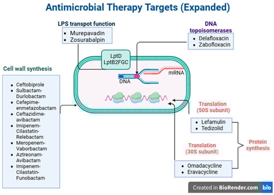197. Zampaloni, C.; Mattei, P.; Bleicher, K.; Winther, L.; Thäte, C.; Bucher, C.; Adam, J.M.; Alanine, A.; Amrein, K.E.; Baidin, V.; et al. A novel antibiotic class targeting the lipopolysaccharide transporter. Nature 2024, 625, 566–571. [Google Scholar] [CrossRef]