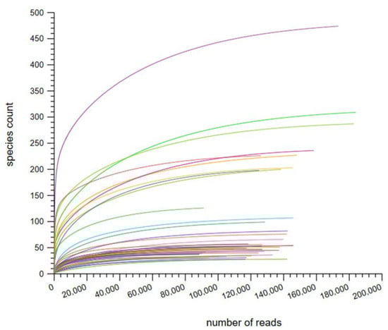 The raw data sent by Macrogen, in fastq format, was subjected to a data hygiene process. This involved trimming off primer sequences and low-quality bases at read ends, joining paired-end reads, and removing chimeras. These sequence hygiene processes and the taxonomic classification of the amplicon sequence variants were carried out on an MG-RAST platform [23], selecting the Silva SSU database [24,25] for the taxonomic study. The calculation of alpha-diversities was conducted based on the Fisher’s alpha, Shannon index, and Simpson index to estimate the average diversity of each sample. Beta-diversities were also calculated to study the rate of species change in the different amplicons. To calculate these diversities, the Past4project application from the University of Oslo was used [26].