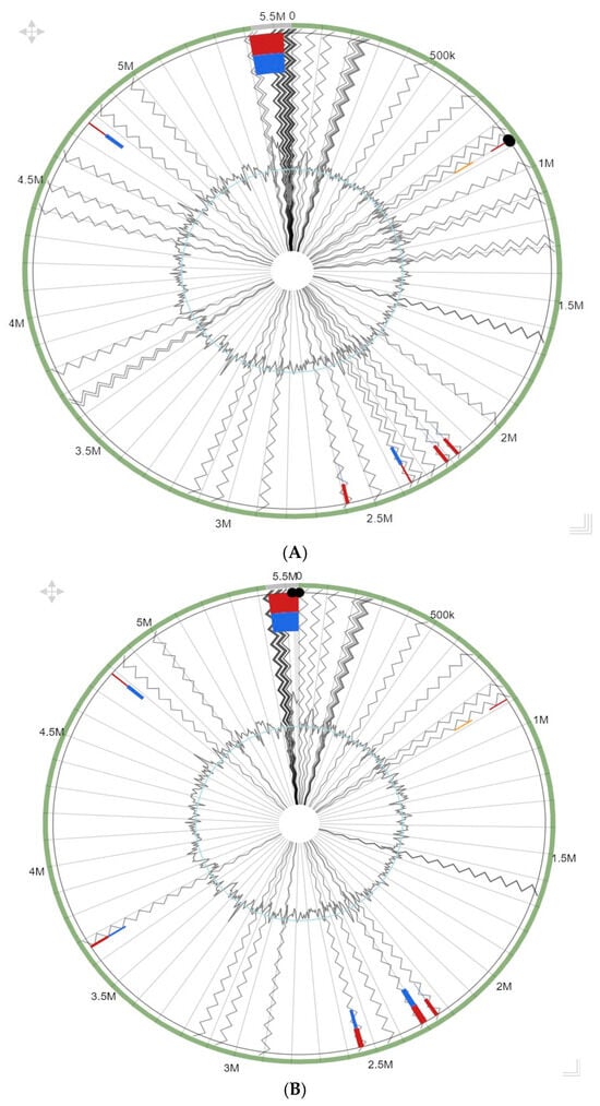 This study identified several putative genes involved in the bacterial endophytic lifestyle and behavior to further understand the factors influencing Bacillus cereus AS_3 and Bacillus cereus AS_5’s lifestyle and colonization (Table S5). Genes putatively associated with transcriptional regulators, stress protection, detoxification, motility, transport, adhesion, substrate utilization, plant cell wall modification, and secretion and delivery systems were identified in AS_3 and AS_5. Moreover, several genes related to chemotaxis and motility, including methyl-accepting chemotaxis proteins, chemotaxis protein CheA, CheC, CheD, and flagellar motor switch protein FliG, were predicted to be essential for bacterial colonization of plant hosts [63]. These genes have been previously linked to endophytic colonization and plant growth promotion [2,64]. Methyl-accepting chemotaxis proteins (MCPs) play a crucial role in the initial colonization stage, where free-living bacteria attach to the rhizoplane [45]. Additionally, these transmembrane sensors enable the detection of surrounding molecules, directing bacteria either away from repellents or toward attractants [65]. Genes encoding sensor histidine were identified in the genomes of strains AS_3 and AS_5. These genes are involved in the early detection of phytopathogens, thereby contributing to the host’s protection mechanism against pathogen invasion [66].