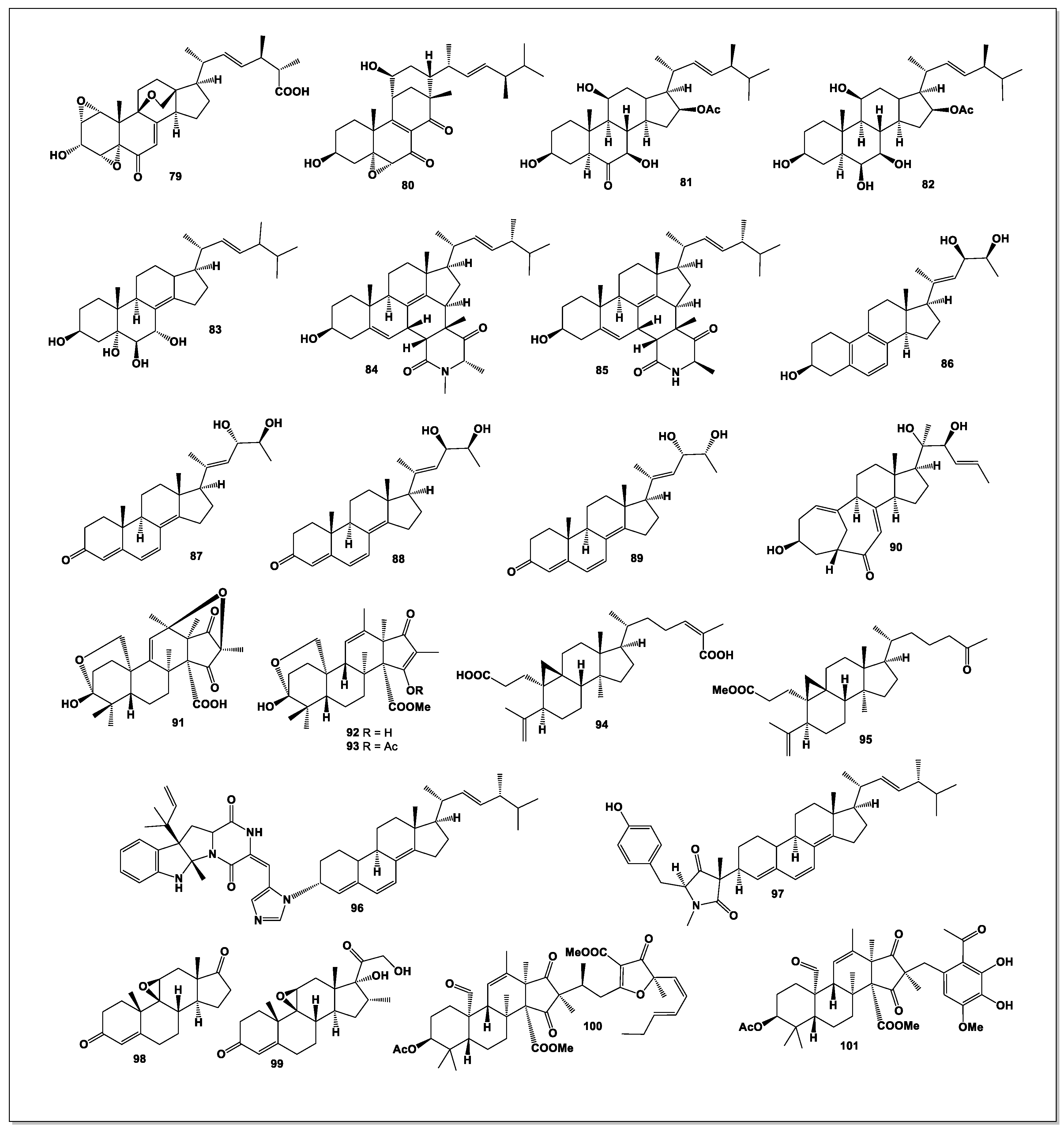 4.2. Ergostane and Pregnane Derivatives with Functional Diversification
