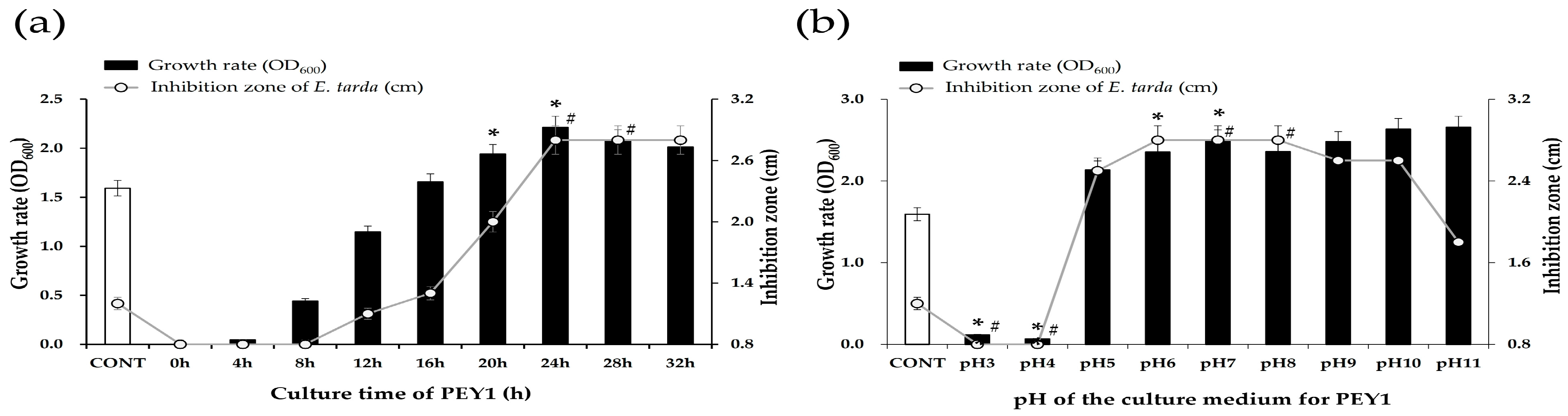 2.3. Characterization of Antibacterial Substances Produced by P. extremorientalis PEY1