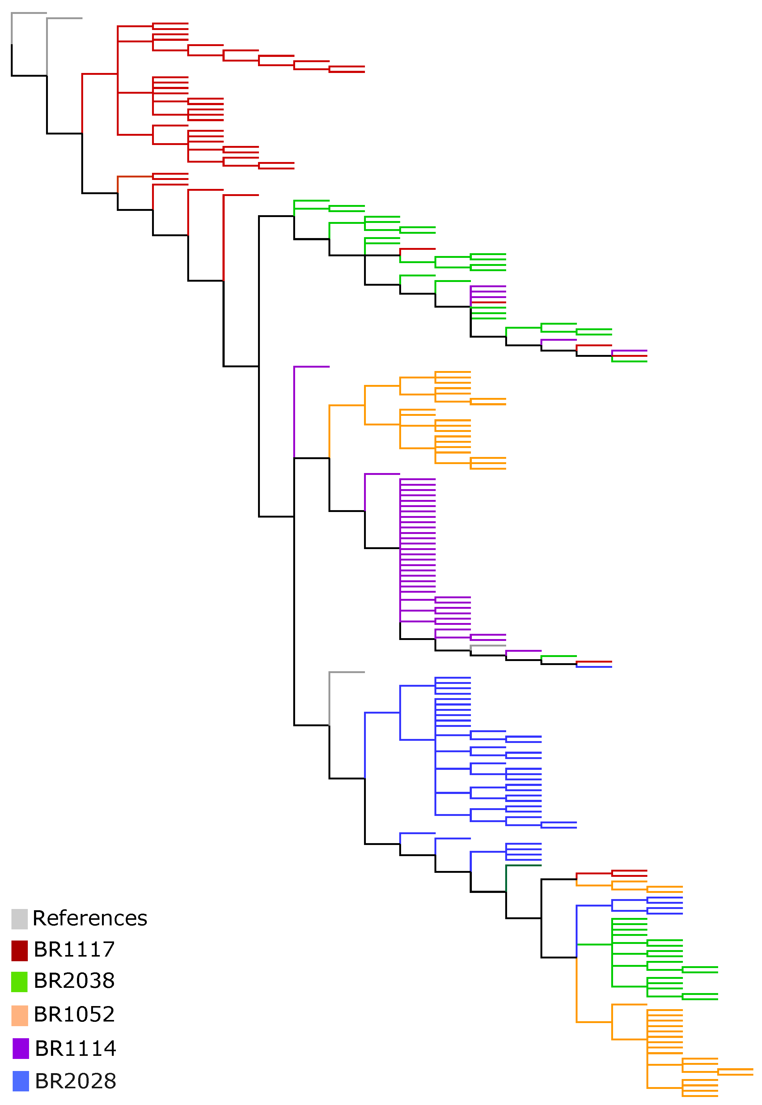 Sequences from the first visit are deposited in NCBI’s GenBank under the following accession numbers: PX482743 (BR1052), JN692478 (BR1114), PX482744 (BR1117), JN692437 (BR2028), and PX482745 (BR2038). All 199 clone sequences from V2 to V5 are also available in GenBank under accession numbers PX449047–PX449245.