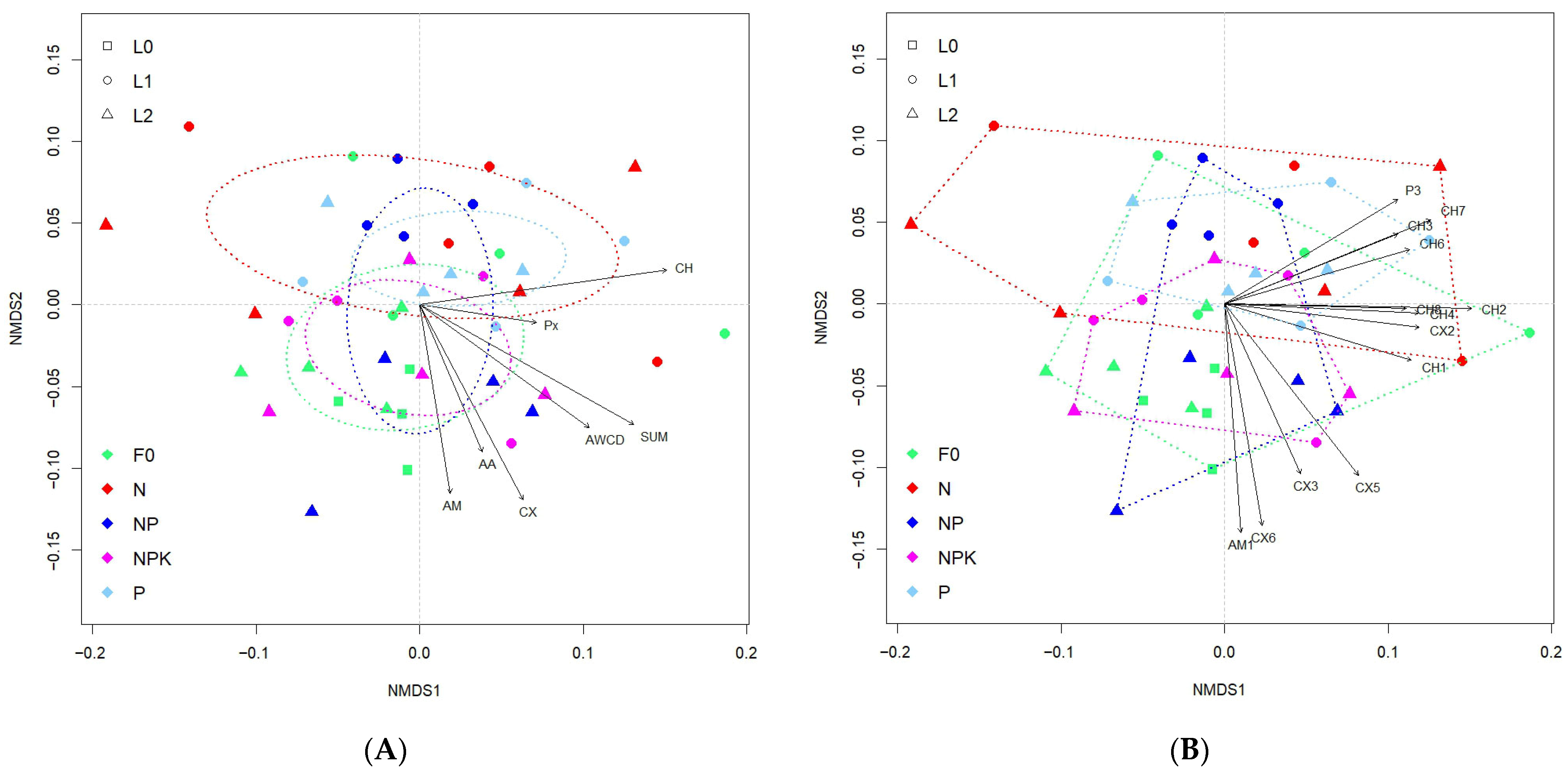 | NMDS1 | NMDS2 | r2 | p Value | AA | 0.39493 | −0.91871 | 0.3977 | 0.001 | |