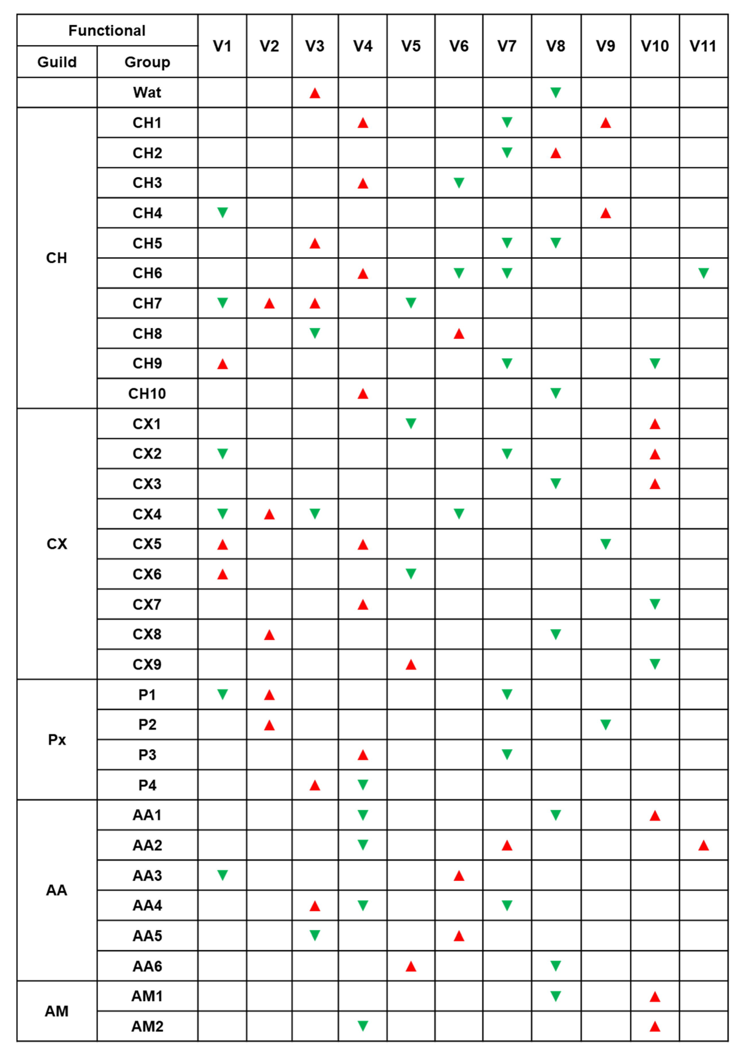 | V | L | F | Water | Px | CH | CX | AA | AM | SUM | AWCD |