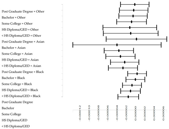 | Parental Education (Post Graduate Degree) × Race (Black) | −2e-05 * | 0.00 | −2.28 | 0.022 |