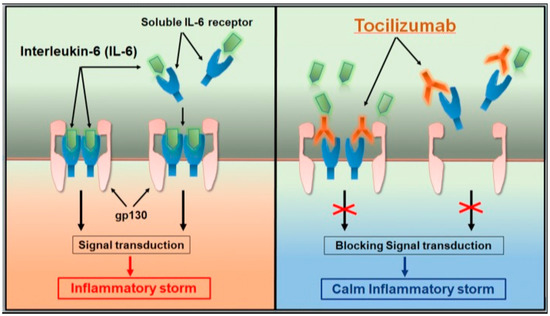 Tocilizumab calms the inflammatory storm through blocking IL-6 receptors [18].