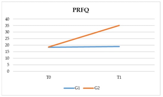 Figure 1. Comparison of the two groups between T0 and T1 at the Parental Reflective Function Questionnaire (PRFQ).