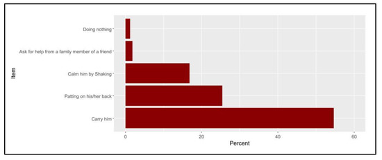 The percentages of the participants’ actions when their baby is crying.
