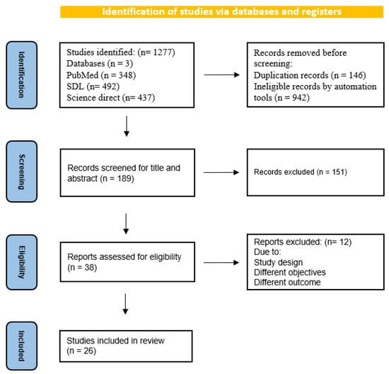 We conducted electronic literature searches, including of Pub Med (National Library of Medicine), Science Direct, and the Saudi digital library, for studies published between January 1989 and January 2022. A structured design based on the Preferred Reporting Items for Systematic Review and Meta-Analyses (PRISMA) Guidelines and a checklist were used to select and review studies included in the review, and they were used as a foundation for reporting systematic reviews with goals other than evaluating interventions [17]. More details about PRISMA checklists are provided in Table S1 in the Supplementary Document.