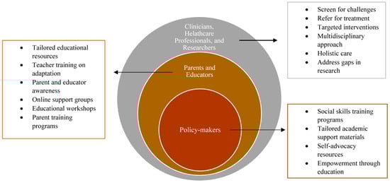 Educators and parents should work collaboratively to implement interventions and support individuals with KS in reaching their full potential. Educational resources for children and adolescents with KS can be developed and shared across educators and parents to address their specific needs across various domains, including cognitive, academic, social, and emotional. Resources for teachers on how to adapt classroom instructions to accommodate the diverse learning styles of students with KS should be developed. For example, implementing visual aids, providing extra time for assignments, or using assistive technologies can help support their learning. Educational brochures have proven effective in raising awareness and disseminating information, with teachers reporting their contribution to informing parents and shaping school practices in special education contexts [66,67]. Therefore, informational brochures containing basic information about KS, its symptoms, and common challenges faced by individuals with the condition can be distributed to parents and educators to increase awareness and understanding of KS. Additionally, providing case studies or real-life scenarios of successful inclusion practices in school settings can offer practical insights for educators and parents on how to support children with KS effectively. Further, online support groups or forums specifically for parents of children with KS and for individuals with KS themselves can provide a space for sharing experiences, asking questions, and offering support to one another. These platforms can also serve as avenues for sharing best practices and success stories related to inclusion and support for individuals with KS.