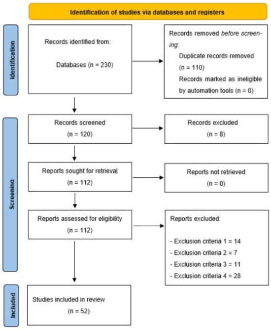 - Page, M.J.; McKenzie, J.E.; Bossuyt, P.M.; Boutron, I.; Hoffmann, T.C.; Mulrow, C.D.; Shamseer, L.; Tetzlaff, J.M.; Akl, E.A.; Brennan, S.E.; et al. The PRISMA 2020 Statement: An Updated Guideline for Reporting Systematic Reviews. BMJ 2021, 372, n71. [Google Scholar] [CrossRef] [PubMed]