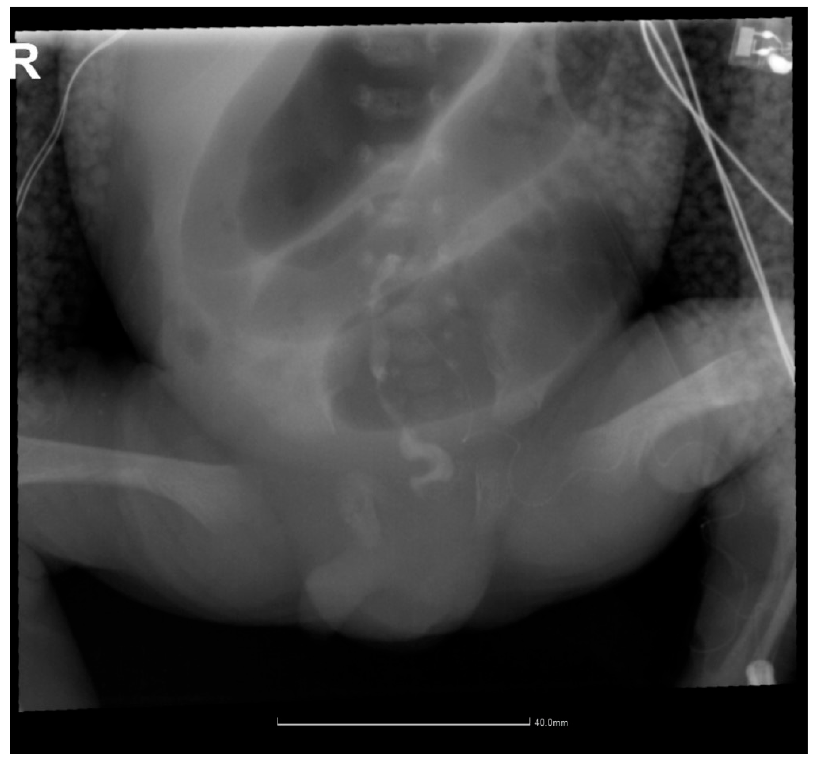 - Mohammed, D.; Abubakar, M.; Haruna, G.I. Radiological Diagnosis of Microcolon in a 5-Day Old Neonate: A Case Report. World J. Adv. Res. Rev. 2020, 8, 238–241. [Google Scholar] [CrossRef]