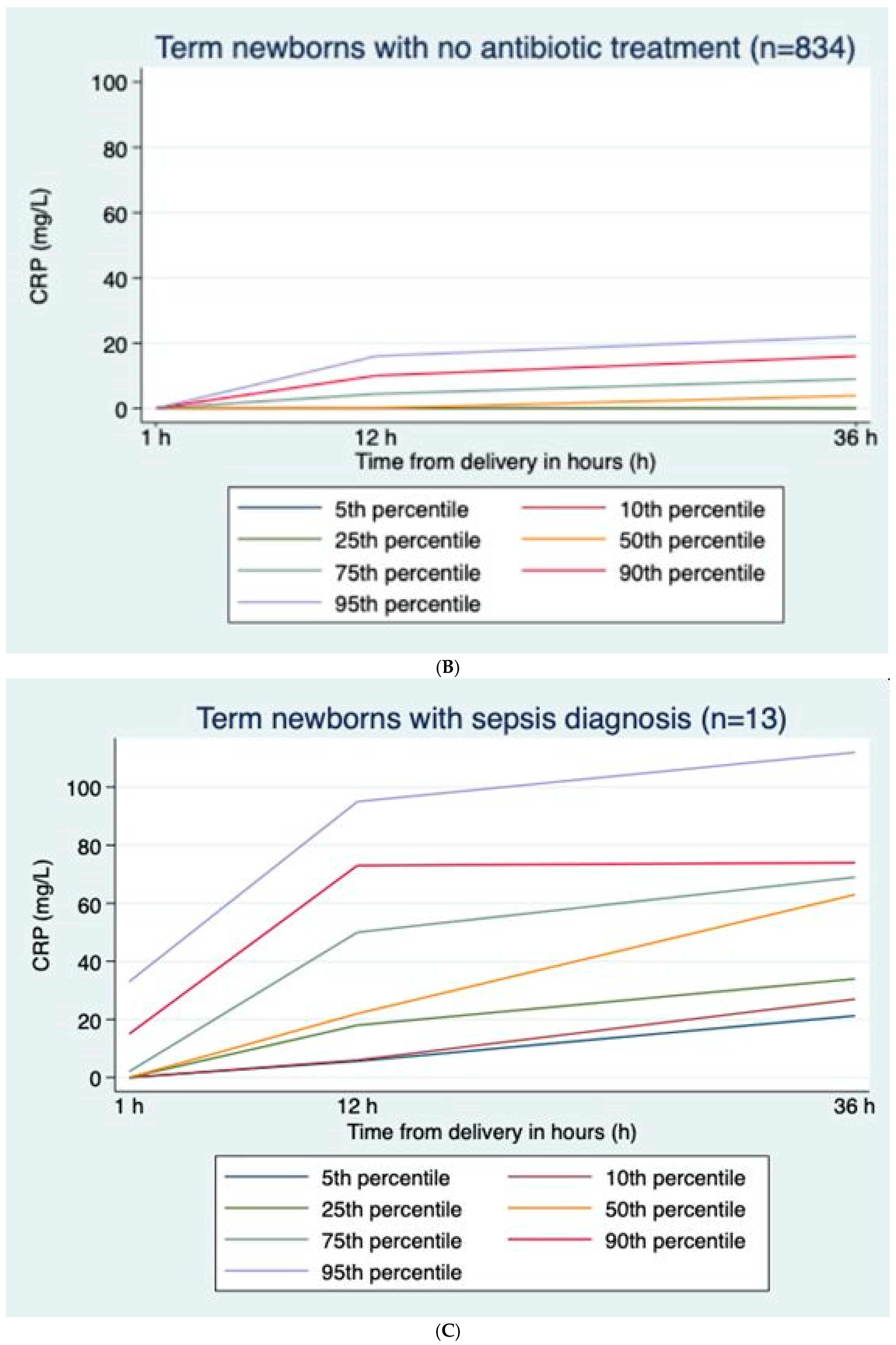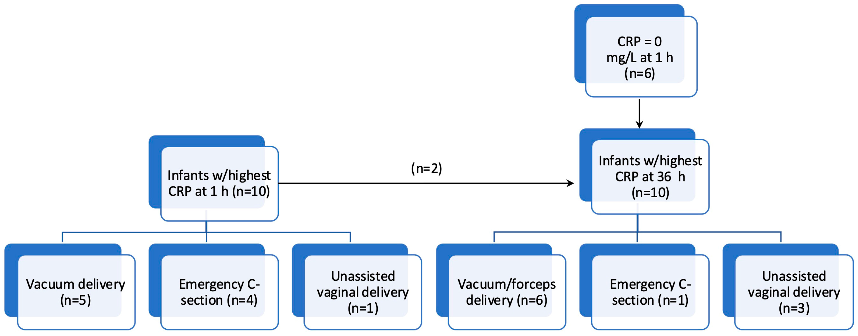 - Macallister, K.; Smith-Collins, A.; Gillet, H.; Hamilton, L.; Davis, J. Serial C-Reactive Protein Measurements in Newborn Infants without Evidence of Early-Onset Infection. Neonatology 2019, 116, 85–91. [Google Scholar] [CrossRef]