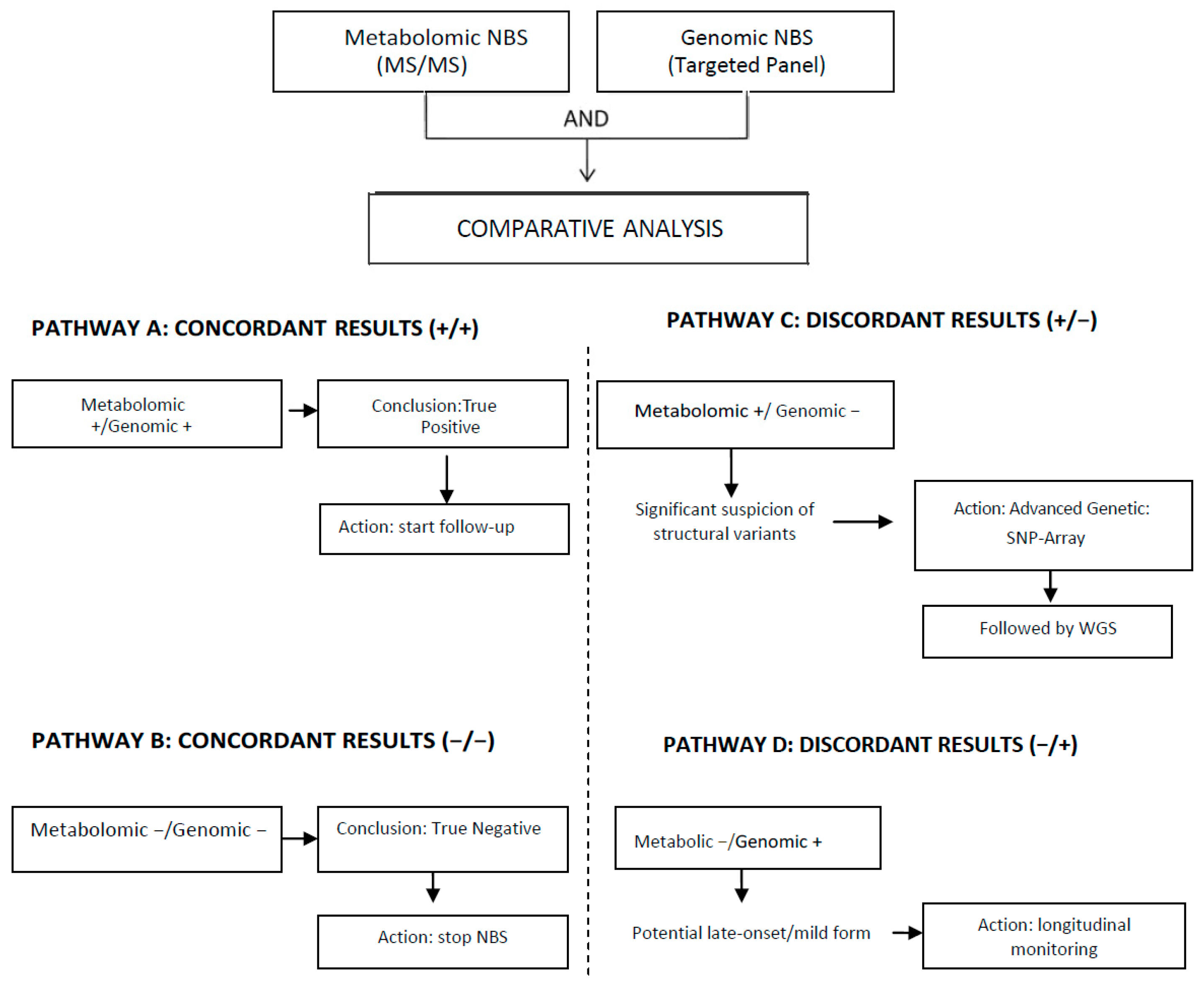 - Ashenden, A.J.; Chowdhury, A.; Anastasi, L.T.; Lam, K.; Rozek, T.; Ranieri, E.; Siu, C.W.; King, J.; Mas, E.; Kassahn, K.S. The Multi-Omic Approach to Newborn Screening: Opportunities and Challenges. Int. J. Neonatal Screen. 2024, 10, 42. [Google Scholar] [CrossRef] [PubMed]