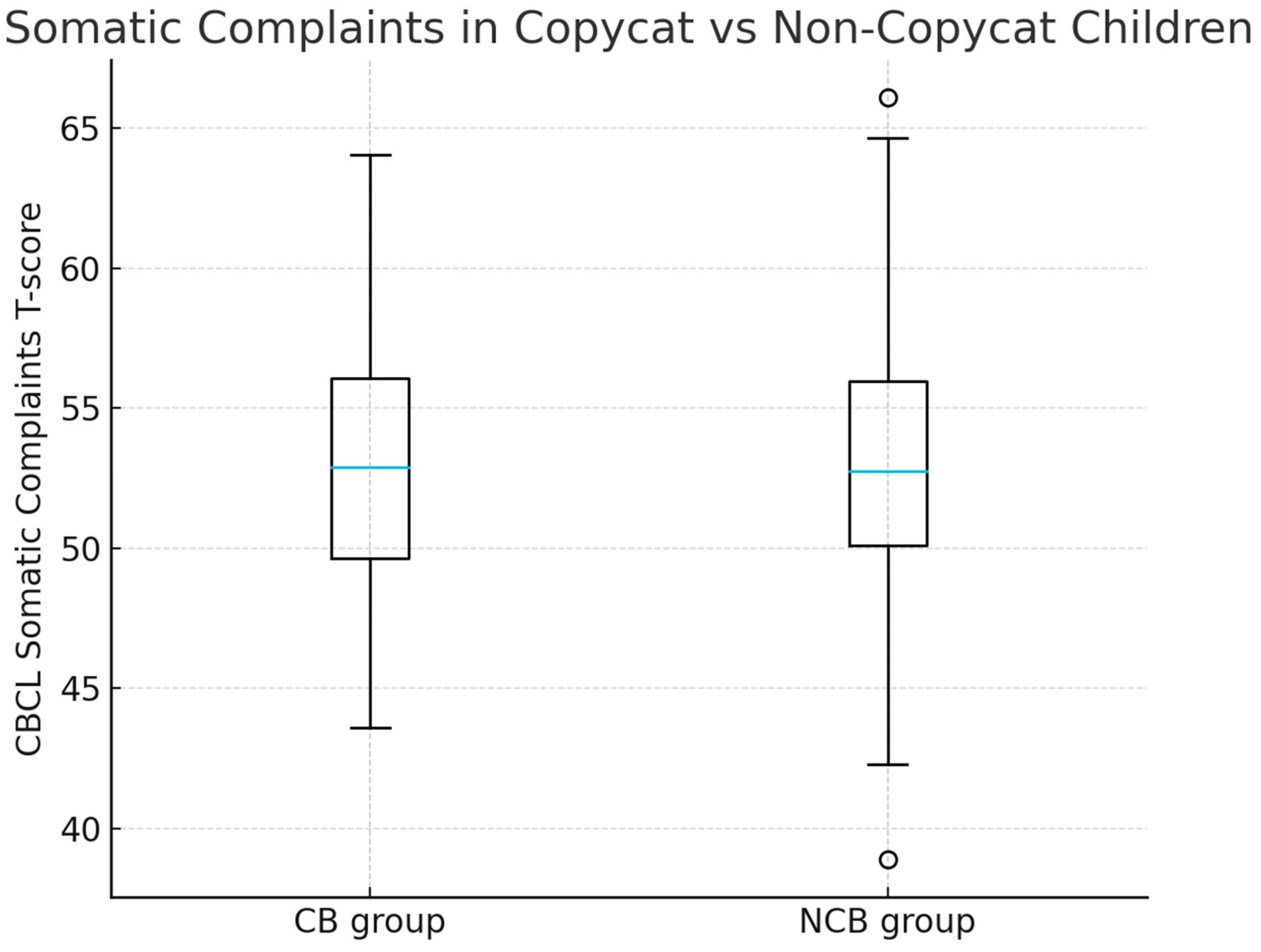 - To compare CBCL-measured emotional and behavioral profiles—particularly somatic complaints—between children who did and did not engage in copycat behaviors.