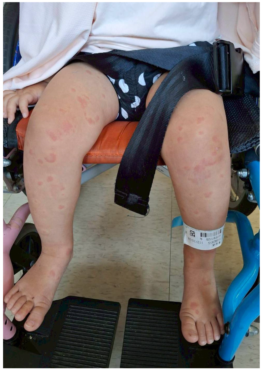 | 2 | F/1Y8M, 10 | Wheals, swelling over trunk and extremities | 32.6 | 12.9 | 7.998 | 12.7 | Hydrocortisone 200 mg per day for 4 days |