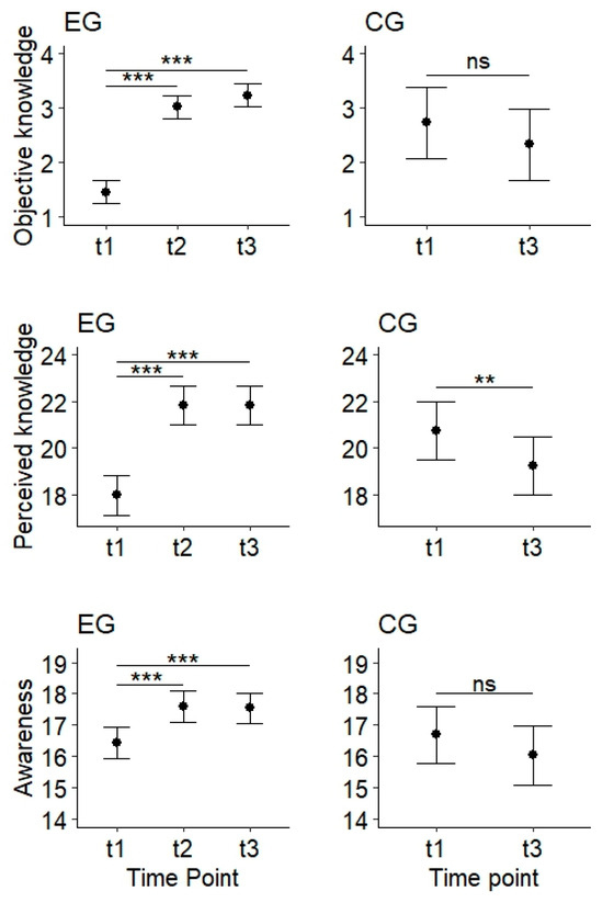 | Variable | Difference EG-CG 1 | Differences Between Time Points | |||||