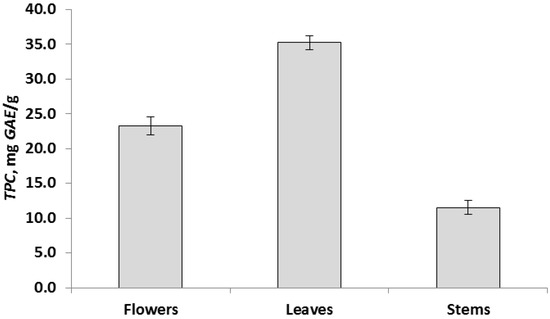 Total phenolic content, TPC, expressed as mean ± SD (in error bar).