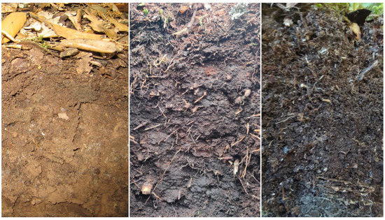- Zanella, A.; Ponge, J.-F.; Jabiol, B.; Sartori, G.; Kolb, E.; Le Bayon, R.-C.; Gobat, J.-M.; Aubert, M.; De Waal, R.; Van Delft, B.; et al. Humusica 1, article 5: Terrestrial humus systems and forms—Keys of classification of humus systems and forms. Appl. Soil Ecol. 2018, 122, 75–86. [Google Scholar] [CrossRef]