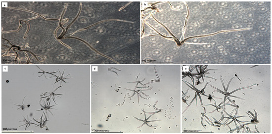 Vázquez et al. [23] assessed the range of variability in the length of the trichomes as follows: rays (160) 180–250 (280) microns; this means that 160 is the minimum value, 280 the maximum value, and 180–250 the most frequent values. This nomenclature is mentioned in the discussion.