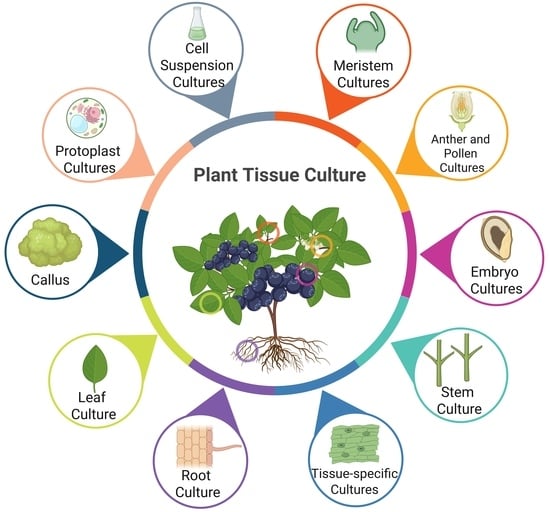 - Correia, S.; Matos, M.; Leal, F. Advances in Blueberry (Vaccinium Spp.) In Vitro Culture: A Review. Horticulturae 2024, 10, 533. [Google Scholar] [CrossRef]