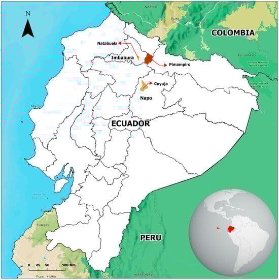 - GADM Pimampiro. Actualización del Plan de Desarrollo y Ordenamiento Territorial del Cantón San Pedro de Pimampiro 2014–2027; Gobierno Autónomo Descentralizado Municipal de Pimampiro: Imbabura, Ecuador, 2015; Available online: https://www.imbabura.gob.ec/index.php/componente-territorial/instrumentos-de-planificacion/pdot-cantonal/file/506-pdot-pimampiro (accessed on 21 October 2024).