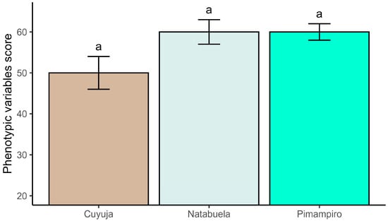 Phenotypic assessments revealed consistent expression of qualitative traits across the three provenances (Figure 3). In Pimampiro and Natabuela, 60% of evaluated trees were classified as superior, while in Cuyuja the proportion reached 50%. These classifications were based on the cumulative scoring of crown morphology, trunk straightness, and phytosanitary condition, applied to all measured individuals within each site. Despite exhibiting the highest mean values in dasometric parameters, trees from Cuyuja more frequently presented bifurcated crowns and trunk irregularities, resulting in lower phenotypic scores for structural traits. Overall, traits such as crown form and phytosanitary condition showed limited intra-site variation, suggesting a stable phenotypic expression that may favor their use in early selection for seed improvement programs.