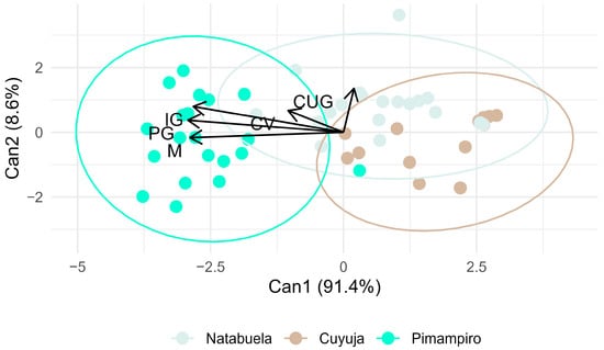 Canonical axis analysis indicated that final germination percentage (PG) and germination index (IG) were the most discriminating variables among provenances, particularly favoring the Pimampiro agroforestry system. These indices are robust indicators of seed vigor and viability [24]. Meanwhile, the germination uniformity coefficient (CUG) was most strongly associated with Cuyuja, reflecting synchronized yet constrained germination, which aligns with dormancy-regulated behavior in montane species.