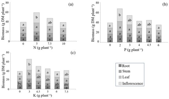| Treatment | N (g Plant−1) | P (g Plant−1) | K (g Plant−1) |