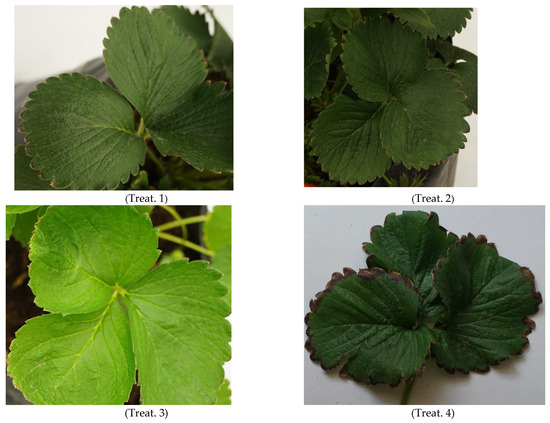 Strawberry is considered one of the most salt-sensitive horticultural crops, experiencing reductions in growth and yield even under moderate salinity. The normal range for soil sodium percentage is 3.1 to 5.0; in our study, it was 24.7. In this study, untreated plants (CK) exhibited evident signs of ionic imbalance and oxidative stress, such as smaller crown diameter, fewer and weaker stolons, and leaf necrosis. These observations are consistent with earlier studies reporting that salinity hampers water absorption, disrupts ion balance, and lowers chlorophyll content, ultimately affecting photosynthesis and growth [31,32]. The ‘Portola’ cultivar thus demonstrates its vulnerability to saline soils, as has been reported for other sensitive strawberry varieties [3,4,5,6].