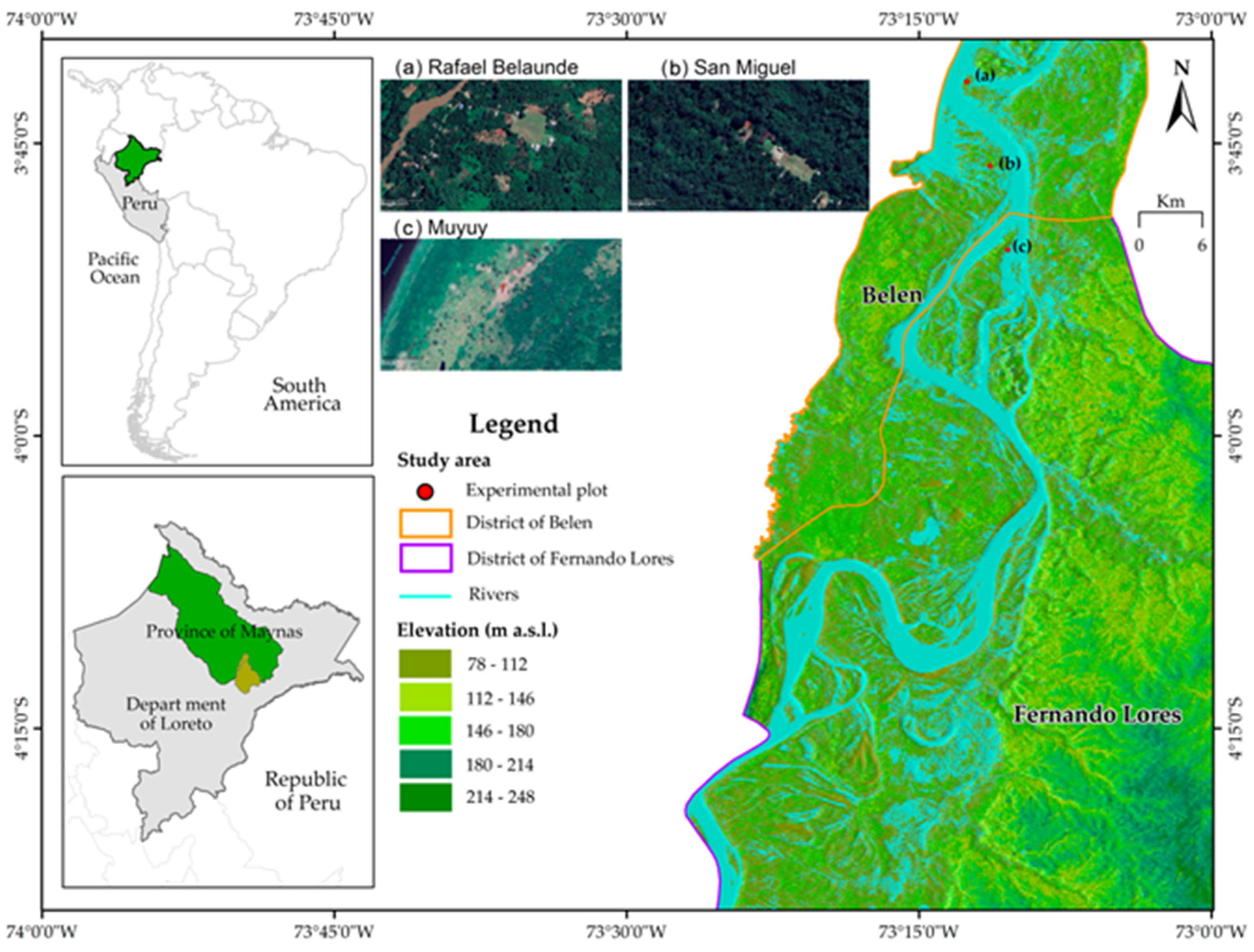 4.1. Importance of Muyuy, Rafael Belaunde, and San Miguel