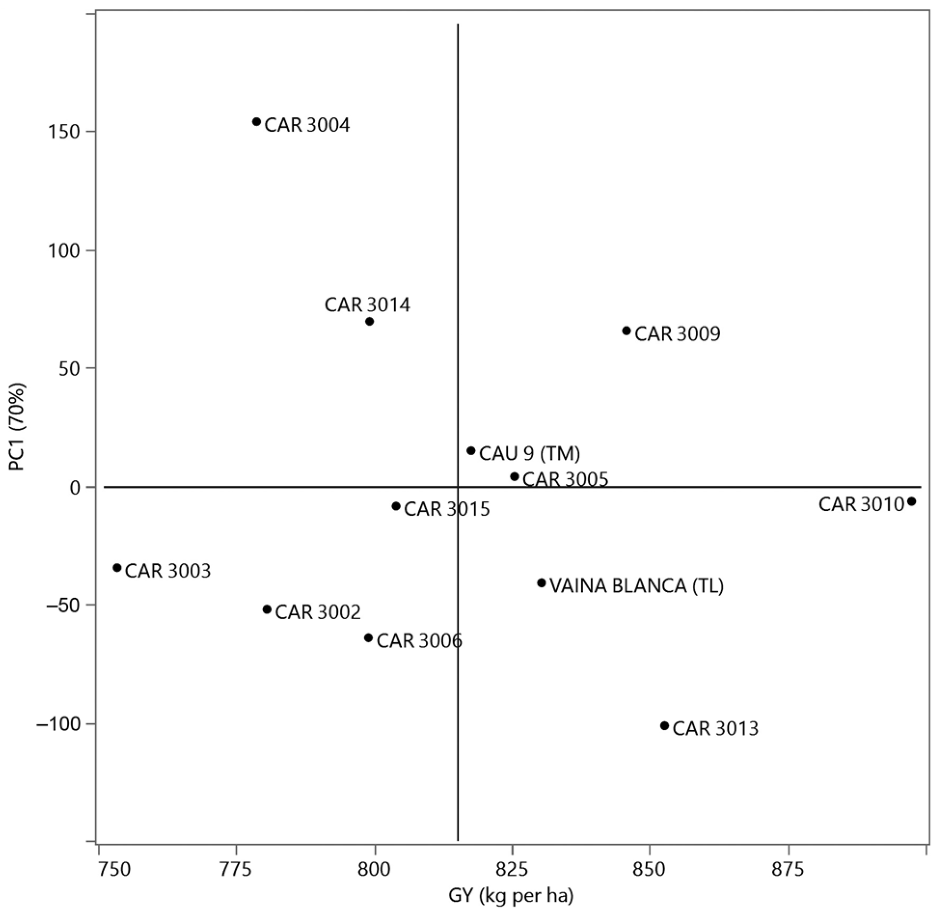 | CAR 3013 | 852.7 | 33.2 | 44.2 b | 64.7 ab | 70.2 a |